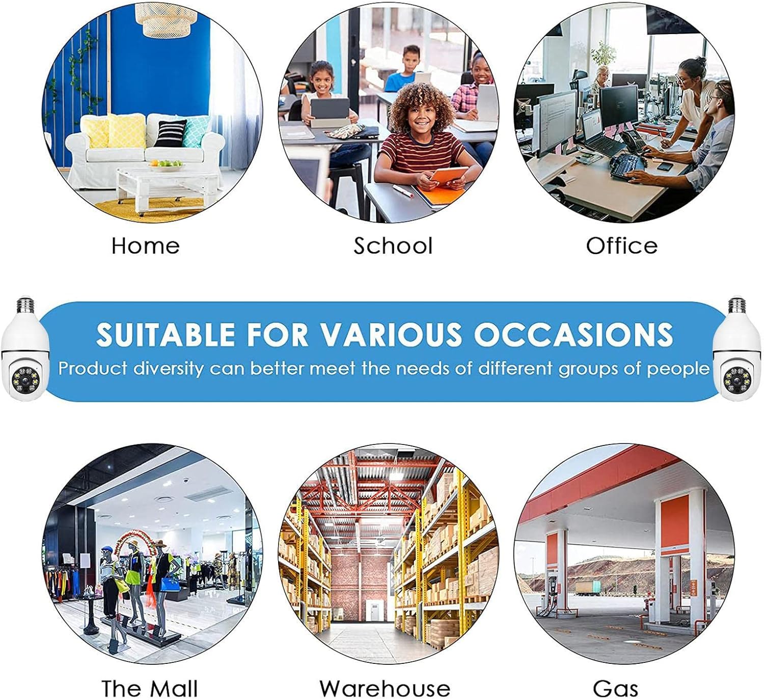 - Two-Way Audio: Built-in good-quality mic and speaker, bulb security camera allows you to communicate with your family through the application anytime and anywhere. It is a perfect security system for schools, offices and home.