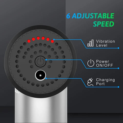 Professional and powerful: The massage gun has high-frequency vibration stimulation with 6 adjustable speeds, can reach a strong force to loosen tight muscles, release lactic acid and relieve muscle pain.