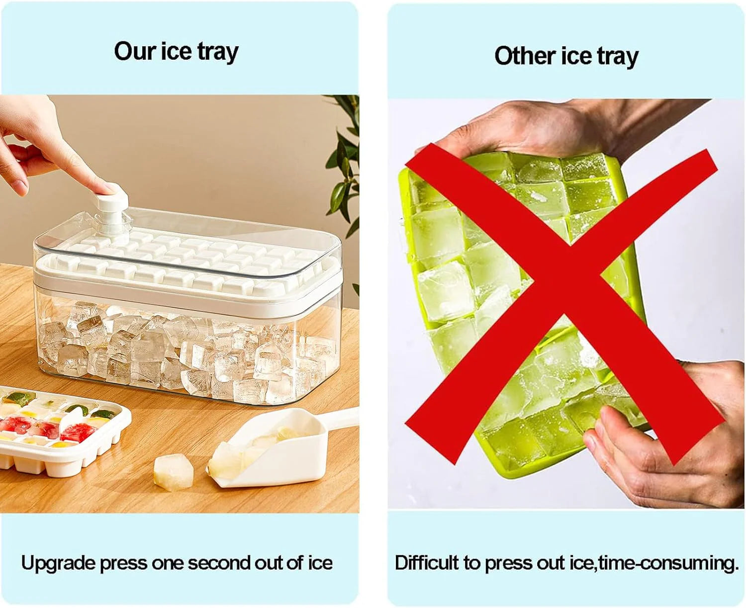 • [EASY RELEASE] Making ice cubes has never been so easy! With an innovative structural design, all the ice cubes can be released with a single press, resulting in 32x2 ice cubes. It's easy! Shortly! Well done!